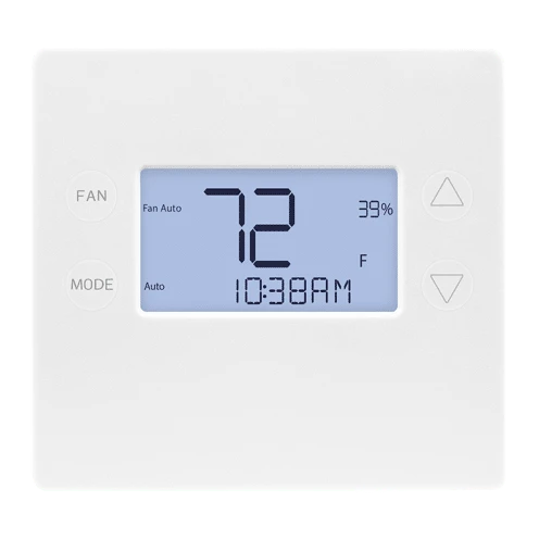 - Modes & Fan Control: Heat, Cool, Auto, Off, Emergency Heat; fan Auto or On.